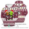 Features pronounced sleeve cuffs, prominent waistband hem, and kangaroo pocket fringes.